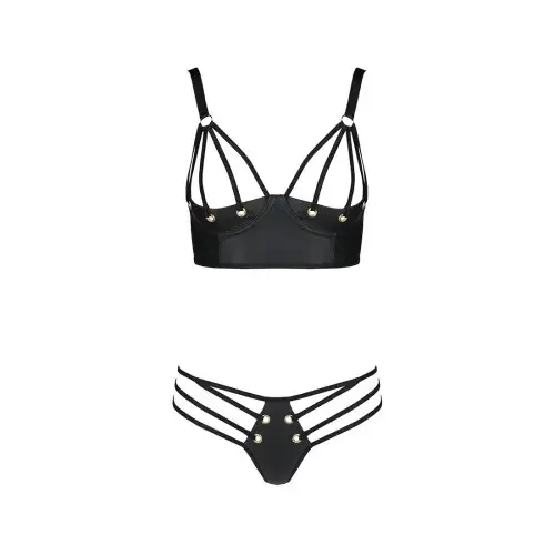 Комплект из эко-кожи с люверсами и ремешками Malwia Bikini black S/M — Passion, бра и трусики