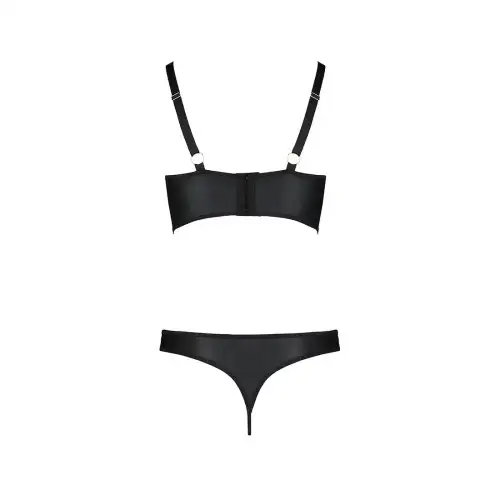 В комплект входят как бюстгальтер, так и трусики, каждая из которых имеет свои уникальные элементы дизайна. Бюстгальтер имеет регулируемые бретели и шнуровку спереди, а трусики имеют сексуальный вырез сзади, открывающий достаточное количество кожи.