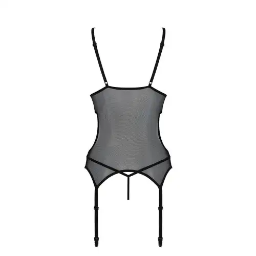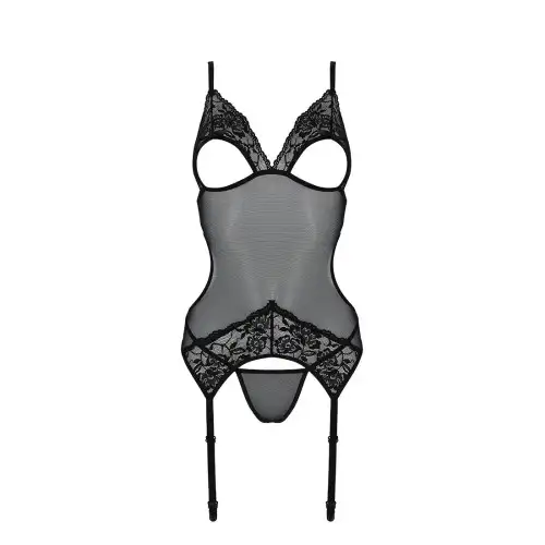 Корсет Passion Christa черного цвета станет прекрасным дополнением к вашей коллекции нижнего белья. Этот потрясающий корсет с подвязками и красивой шнуровкой спереди позволит вам чувствовать себя сексуально и уверенно. Замысловатое кружево на чашечках придает нотку элегантности, а входящие в комплект стринги завершают образ.