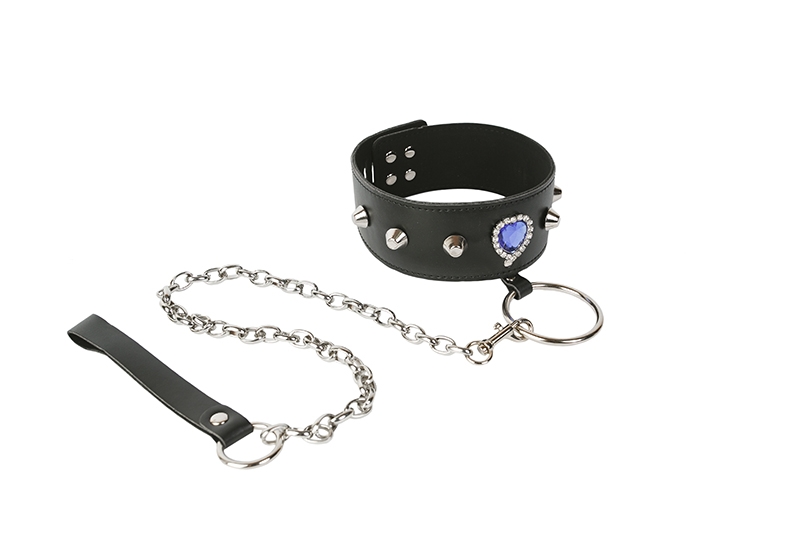 Любителям БДСМ развлечений или кто решил внести разнообразие в интимные отношения, предлагаем купить стильный ошейник с большим синим кристаллом и поводком. Этот девайс позволяет управлять действиями партнера, доминировать над ним. По всей длине ошейника идут выступающие, хромированные, тупые шипы, что добавляет вам сексуальности, игривости и неповторимости. Небольшая цепочка с карабином и петлей для кисти добавит пикантности вашим развлечениям. Большой камень с синим оттенком, инкрустирован маленькими, прозрачными стразами.