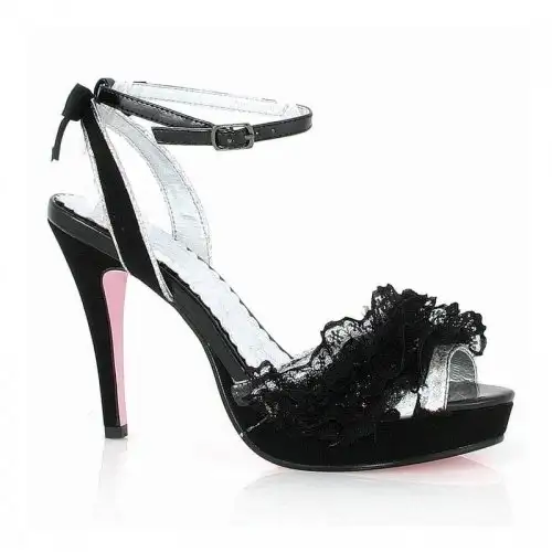 Элегантные босоножки с тонким черным кружевом придадут особоый шик любому вашему наряду, и особенно – тому, который вы бы хотели показать своему партнеру наедине. Длина каблука – 10 сантиметров, производитель – Ellie Shoes.
