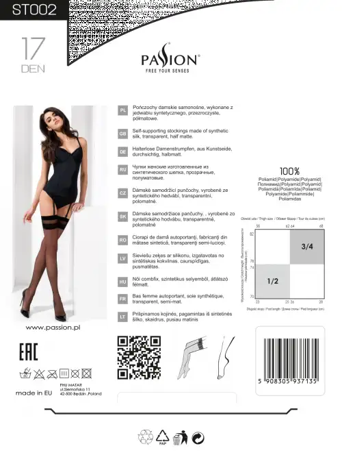 Если вы ищете что-то особенное, что заставит вашего партнера упасть в обморок, обратите внимание на черные чулки Passion ST002 Nero из нашей коллекции. Эти чулки обязательно добавят изюминку в вашу жизнь как в спальне, так и за ее пределами! Так почему бы не побаловать себя сегодня?
